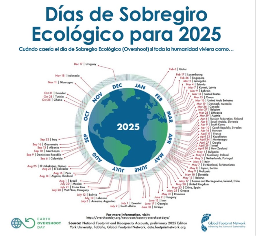 El 24 de Julio se conmemora a nivel MUNDIAL el Día del Sobregiro de la Tierra del año 2025, pues se relaciona con la manera como utilizamos los recursos de nuestro planeta durante este año. Desde el año 1987 se celebra el Día de Sobrecapacidad de la Tierra.